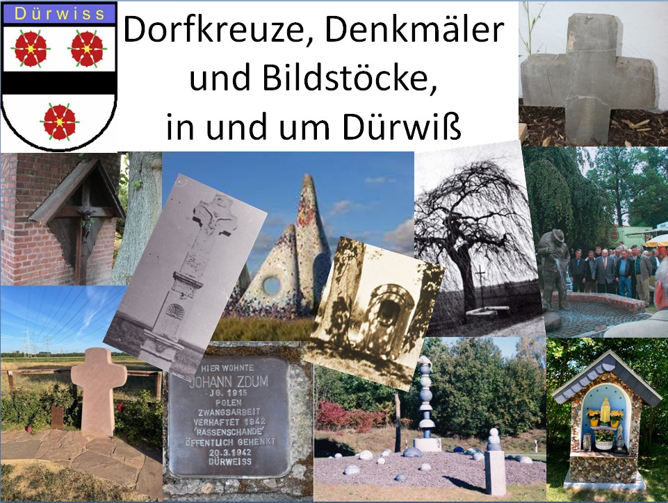 Es wurde über die alten Wegkreuze, Bildstöcke und Denkmale aus der Zeit zwischen 1650 und 2000 berichtet. Die drei Gedenkstätten für die Gefallen der beiden Weltkriege sowie die im Ort befindlichen Stolpersteine in Gedenken von NS-Opfern in Dürwiß wurden erläutert, wobei die Hinrichtung von Johann Zdum als polnischer Zwangsarbeiter eine große Betroffenheit auslöste.